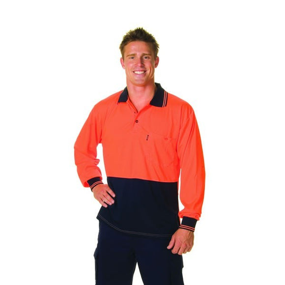 3813-HiVis Two Tone Fluoro Polo Shirt, Micromesh, Long Sleeve