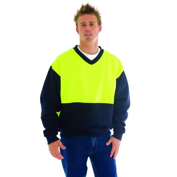 3822-HiVis Two tone Fleecy Sweat Shirt, V-Neck