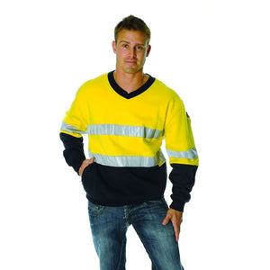 3924-HiVis Two Tone Cotton Fleecy Sweat Shirt, V-Neck with 3M Reflective Tape